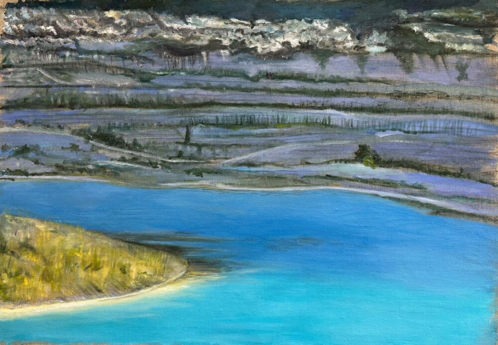 Behalve een zich snel ontwikkelende groene natuur bevinden zich in de groeve tal van plassen en poelen, die bij sommige weersomstandigheden de meest fantastische kleuren hebben. Een walhalla voor een schilder. Voor mij in elk geval!