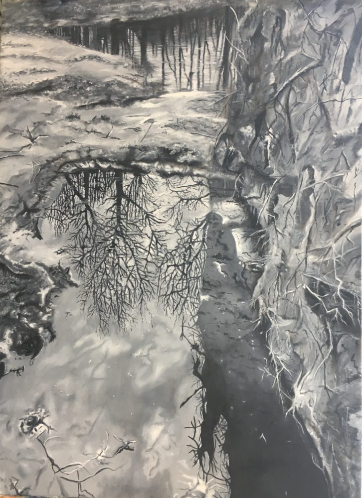 ENCI Groeve – Winterse mergelpoel / ENCI Quarry – Wintry Marl Pool (2021)Olieverf op ongeprepareerd linnen125 x 95 cm.n.t.k. -