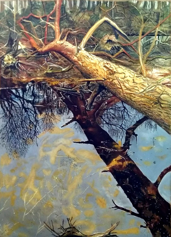 Broken mirror (2017/2018) Olieverf op ongeprepareerd grof linnen135 x 100 cm -