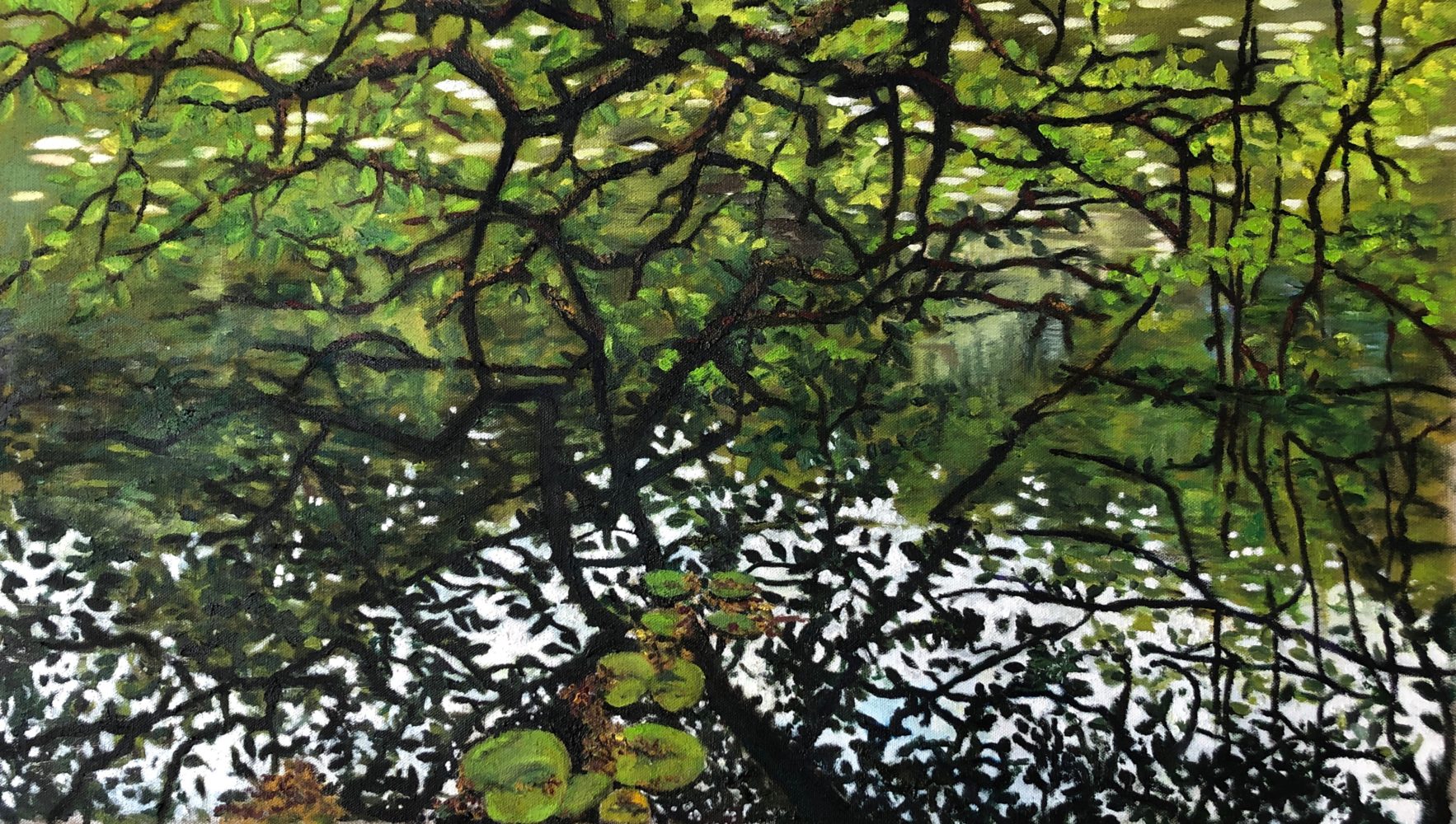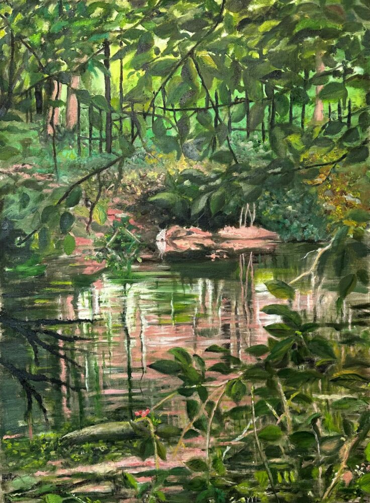 De Zwanenvijver (2025)Olieverf op ongeprepareerd linnen93 x 120 cm.