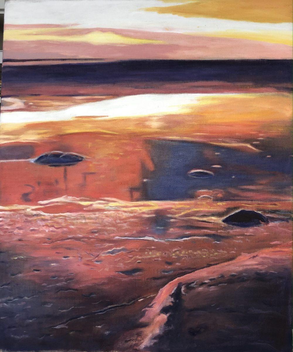 Sunset on the mudflatsOlieverf op ongeprepareerd linnen79 x 95 cm.n.t.k.