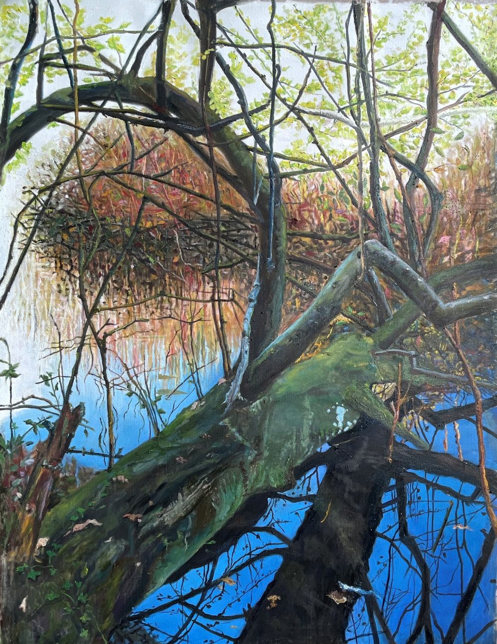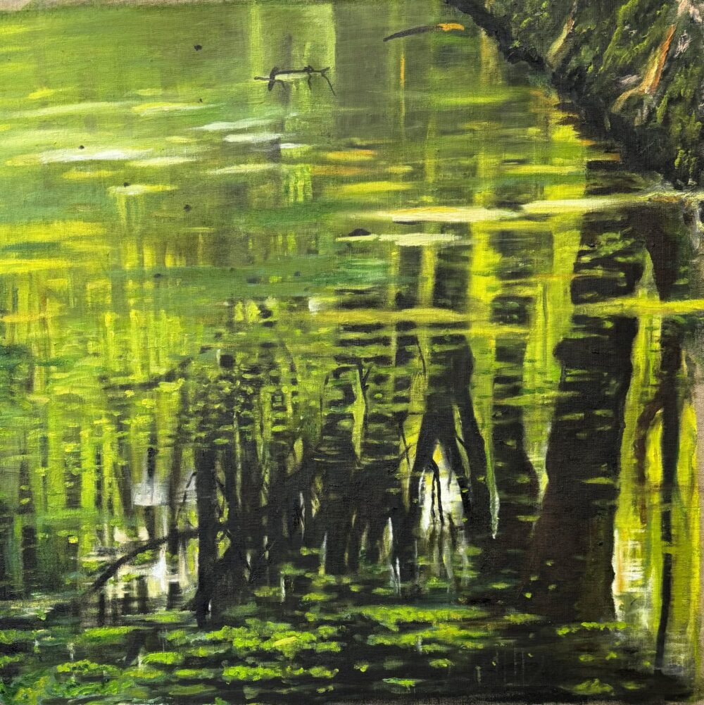 Swamps of the IJse (2023)Olieverf op ongeprepareerd linnen85 x 120 cm.