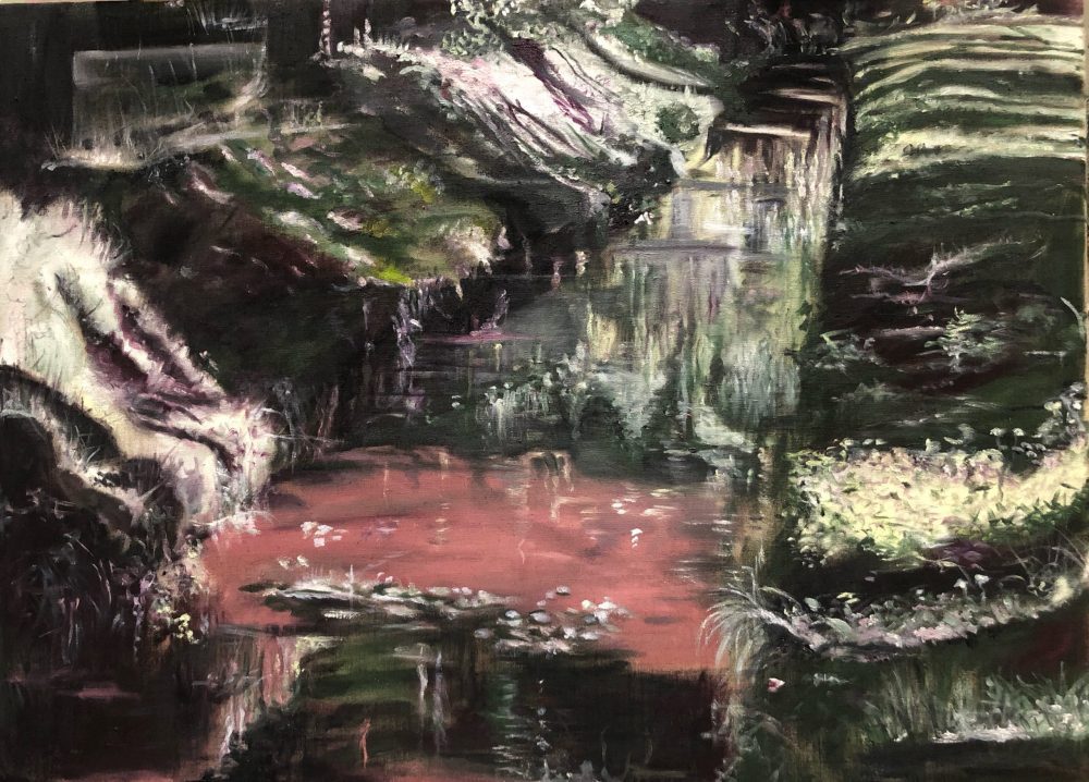 Platypus pool (2016) Olieverf op ongeprepareerd grof linnen 135 x 100 cm