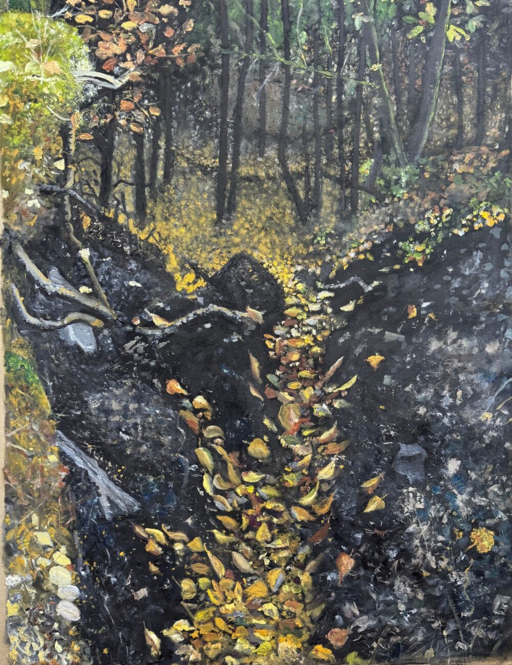 De Jeker vanaf de Roej Brögk / The river Jeker, seen from the ‘Roej Brögk’ (2022)Olieverf op ongeprepareerd linnen 85 x 85 cm -